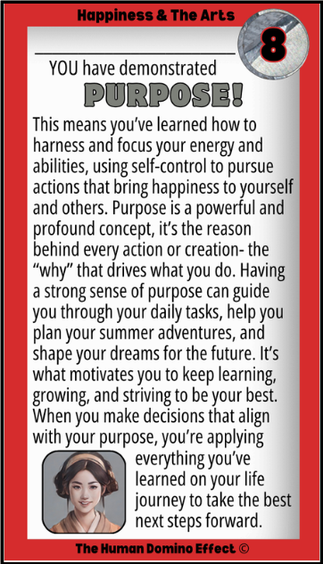 Happiness begins with finding something you love to do that also makes you feel joyful and energized. Doing activities you enjoy helps you learn how to focus and pay attention. When you practice something fun, it becomes easier to improve and build new skills. Happiness is tied to creative expression - and that's what the arts are all about! Whether it's cooking, singing, painting, playing music, acting, writing, or designing, the arts let you express yourself and spark joy. To build happiness for yourself and others, try all kinds of hobbies and learn skills to see what resonates and sparks joy in your heart and mind.