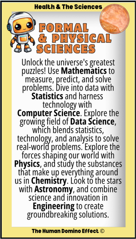 Being healthy has to do with making choices that help our bodies and minds function well and stay strong. This includes things like exercising, washing our hands, brushing our teeth, going to the doctor, and taking any medicine we might need. Health is part of the Sciences. Science helps us understand the physical and natural world through observation, experiments, and testing ideas. Remember, choices that harm our health or block our ability to gain knowledge keep us from reaching our full potential in this area of health.