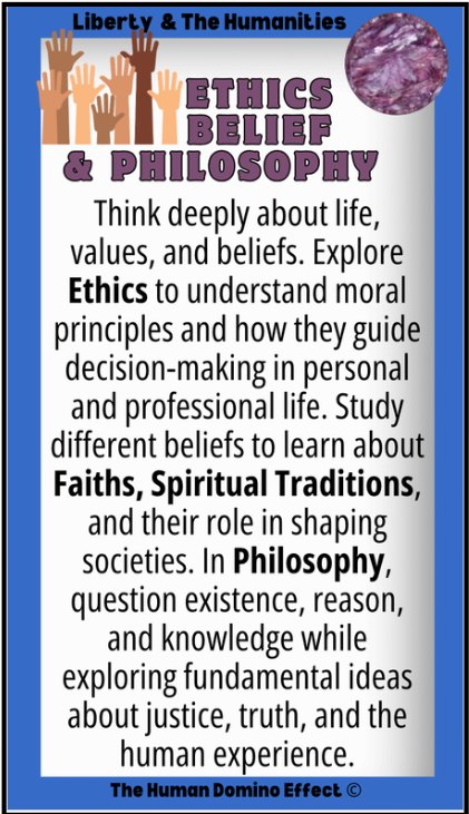 The Character Equations are divided into Health (The Sciences), Liberty (The Humanities), and Happiness (The Arts), reflecting how the real world, and the academic and trade professions, are structured. Unlike purely contrived curriculums, this approach connects character traits to practical skills and knowledge, preparing students for meaningful careers and a deeper understanding of how the world works.