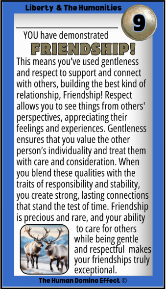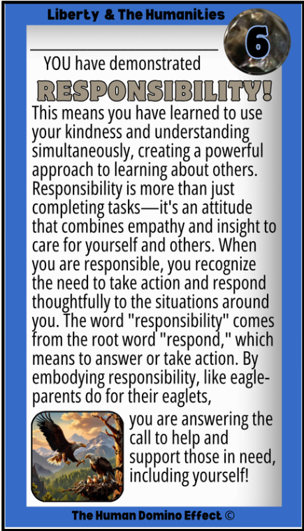 Liberty means having the freedom to live your life in a way that is fair and safe for you and everyone else at the same time. It's about respecting other's freedoms and differences, finding common ground, and building friendships that make everyone feel valued and free to be their selves. Liberty is part of the humanities. The humanities is a field of study that focuses on human culture and how people interact and cooperate. It explores our history, religions, philosophies, and languages, and examines how they influence personal liberty. To honor liberty, we can show kindness and respect everyone's freedom to be themselves.